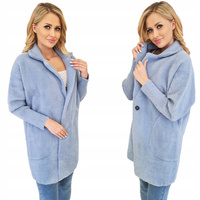 Damski Płaszcz z Alpaki Oversize - Plus Size Duży Rozmiar 50 BUTELKOWA ZIELEŃ