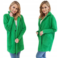 Damski Płaszcz z Alpaki Oversize - Plus Size Duży Rozmiar 50 BUTELKOWA ZIELEŃ
