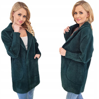Damski Płaszcz z Alpaki Oversize - Plus Size Duży Rozmiar 50 BUTELKOWA ZIELEŃ
