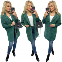 ( ilość produktów: 122 )Damski Płaszcz z Alpaki Oversize - Plus Size Duży Rozmiar 50 ZGASZONY ZIELONY