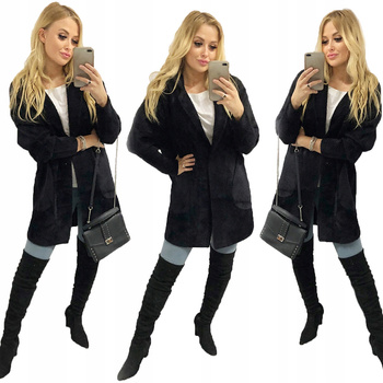 Damski Płaszcz z Alpaki Oversize - Plus Size Duży Rozmiar 50 BUTELKOWA ZIELEŃ