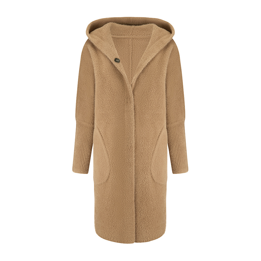 Alpaka Płaszcz Oversize z Kapturem CAMEL