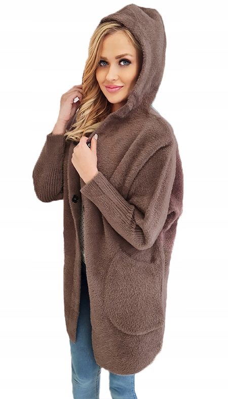 Wysoko gatunkowy płaszcz z ALPAKI Z WEŁNĄ, bardzo delikatny i miękki w dotyku. Płaszczyk z kapturem o oversizowym kroju idealnie dopasowuję się do sylwetki