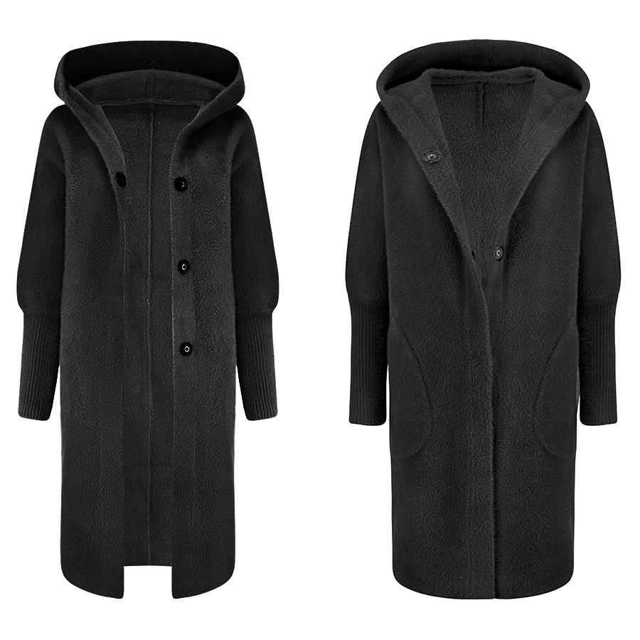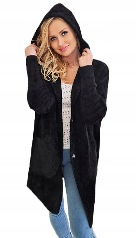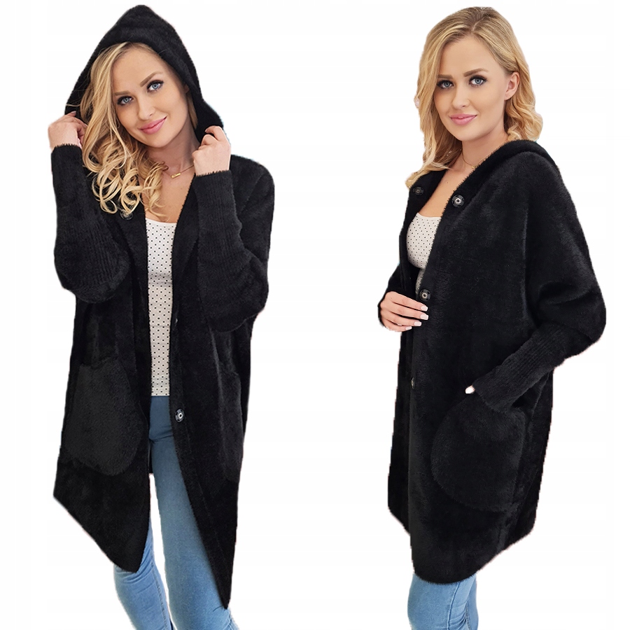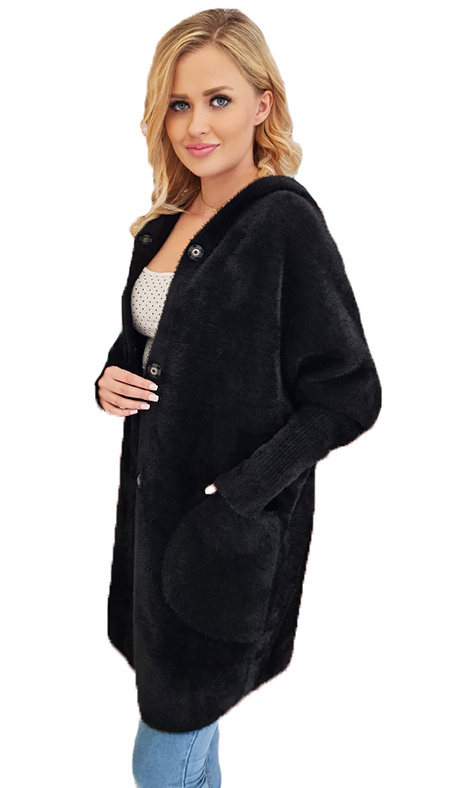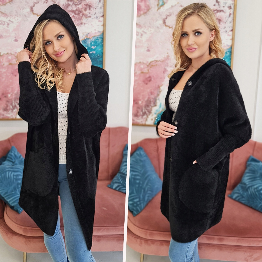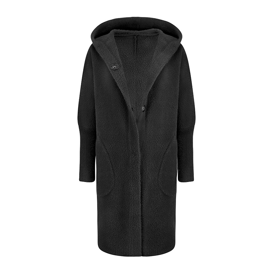Alpaka Płaszcz Oversize z Kapturem CZARNY