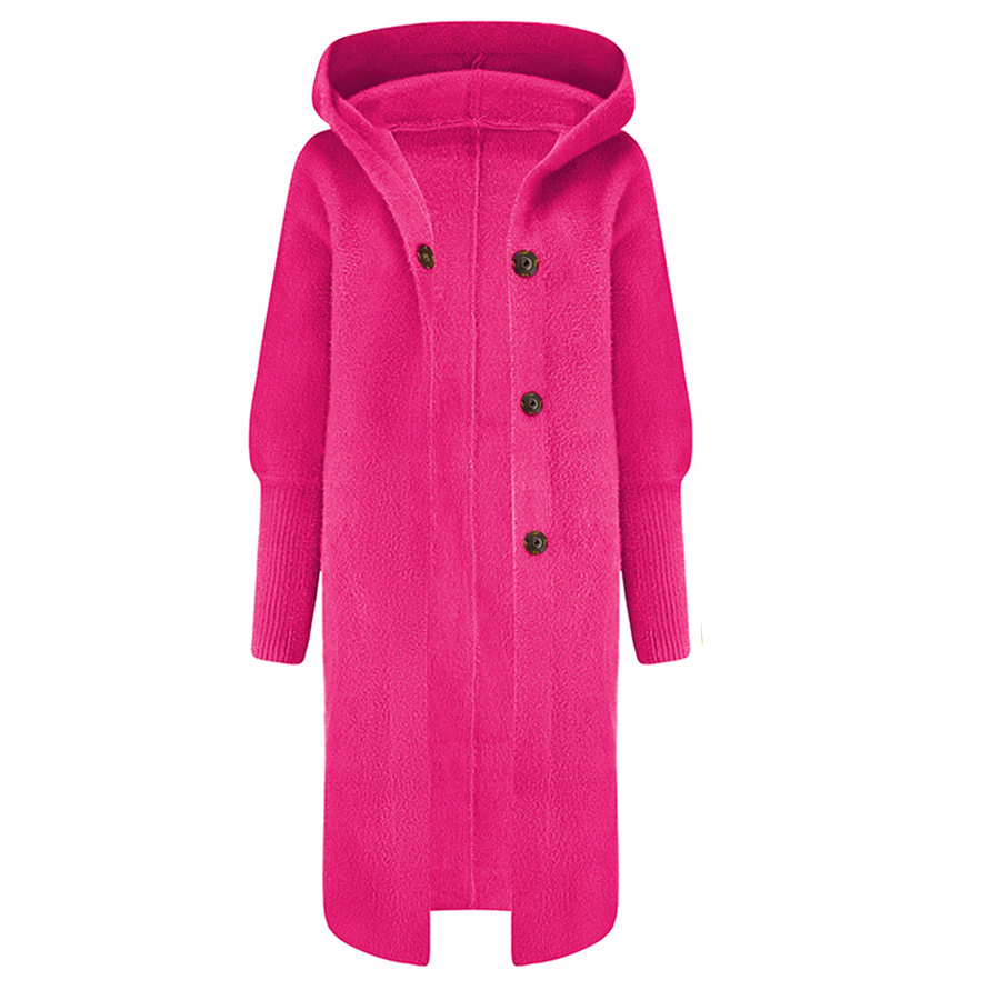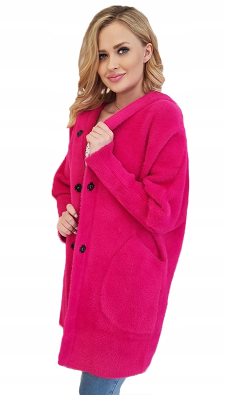 Alpaka Płaszcz Oversize z Kapturem FUKSJA