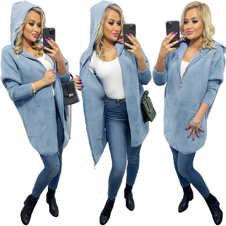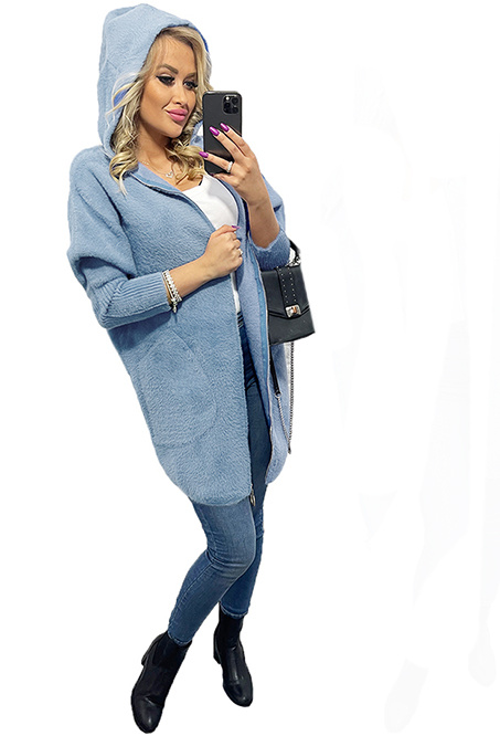 Alpaka Płaszcz z Kapturem Zapinana Na Suwak Wełna Oversize BABY BLUE