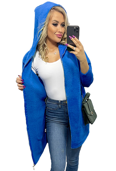 Alpaka Płaszcz z Kapturem Zapinana Na Suwak Wełna Oversize CHABROWY
