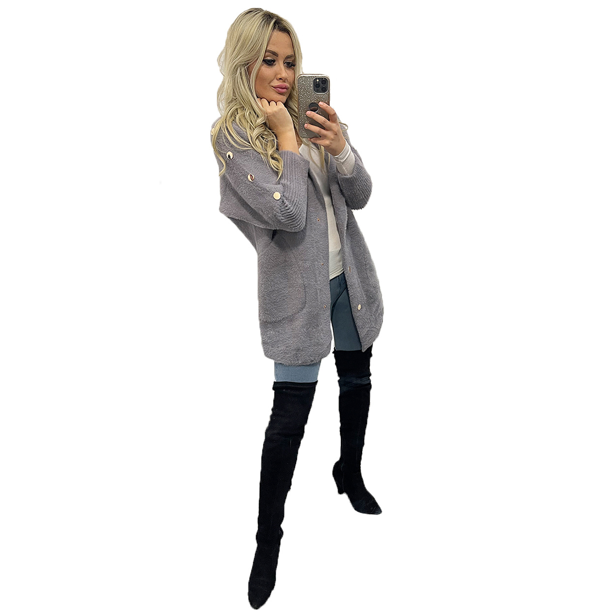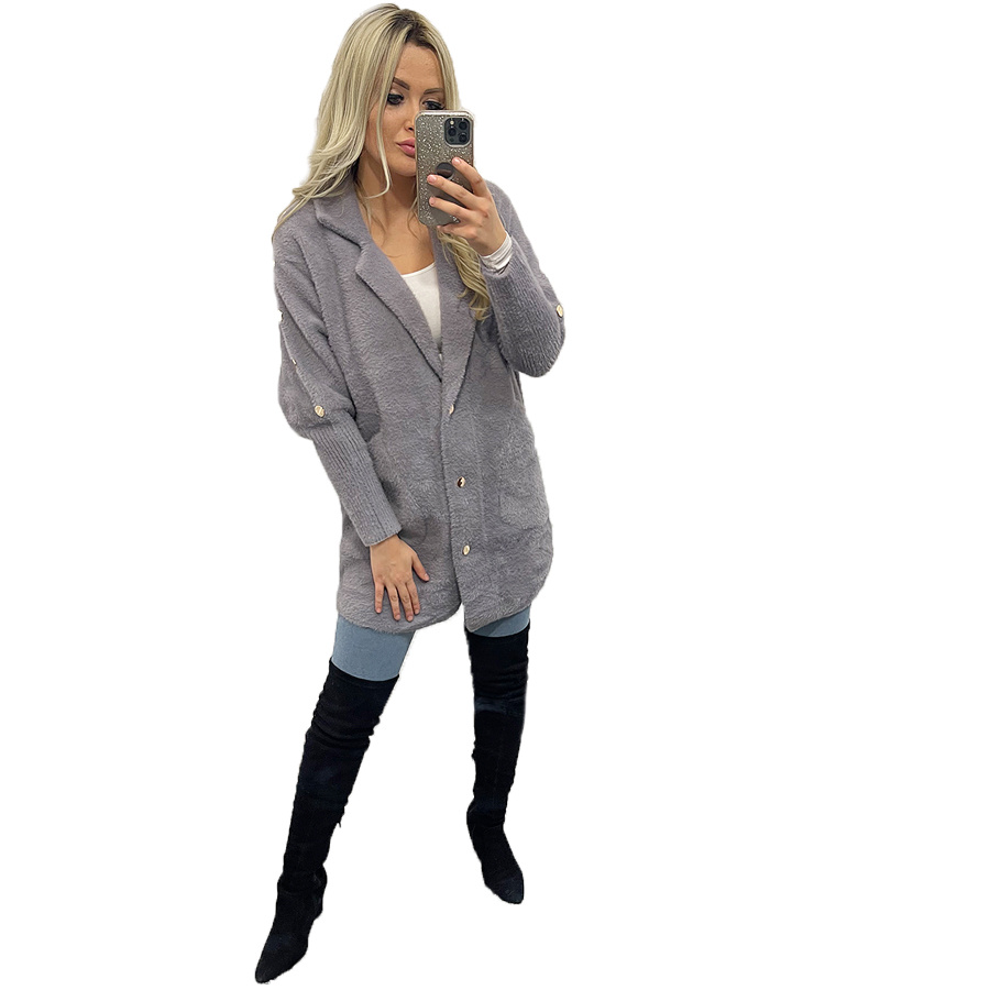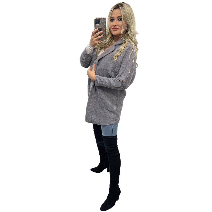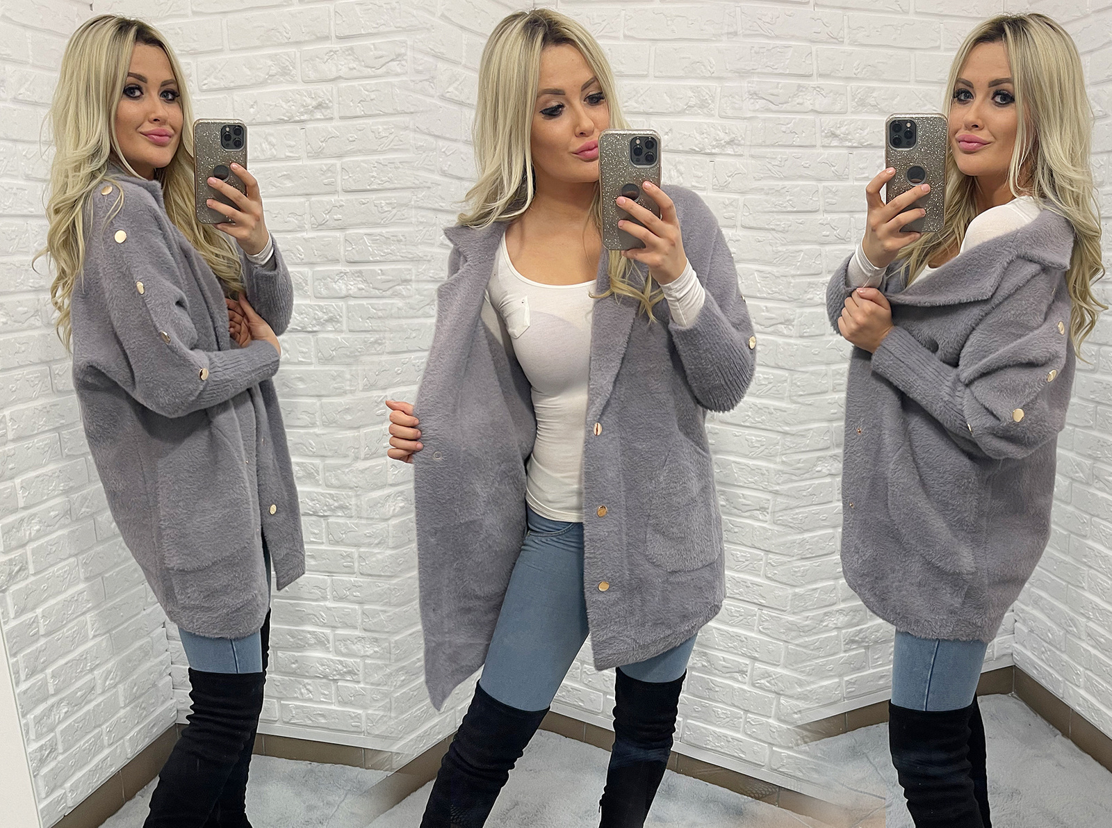 Alpaka z Guziczkami Ciepły płaszcz narzutka Wełna SZARY