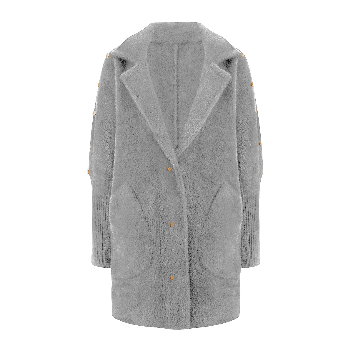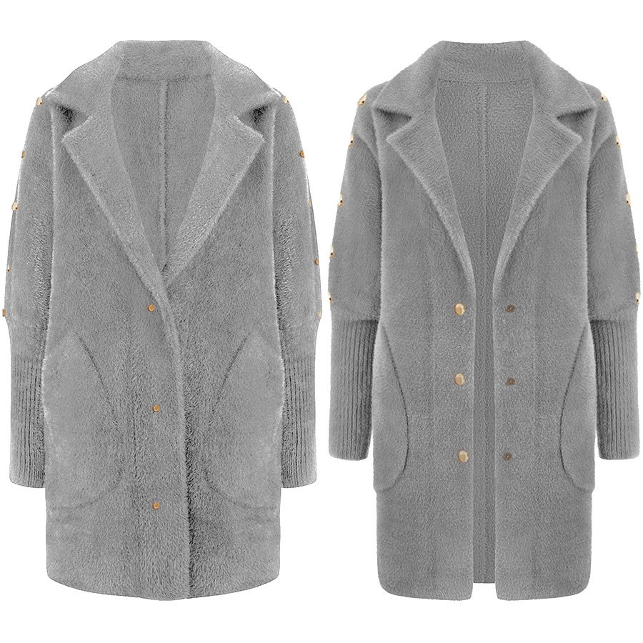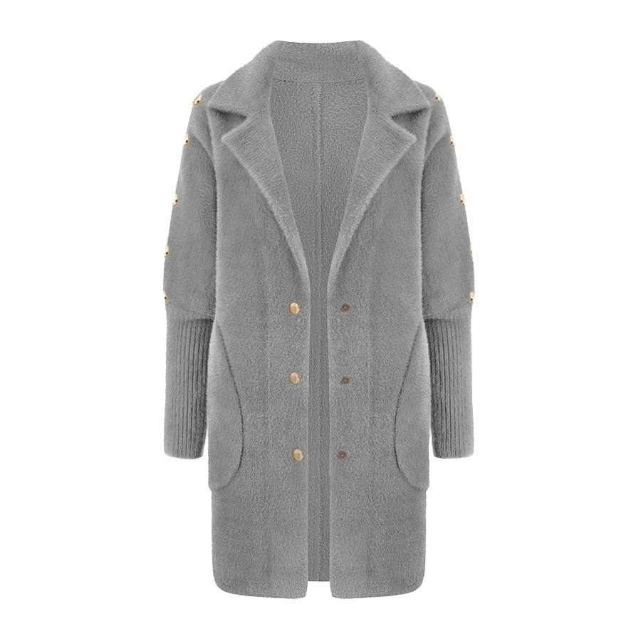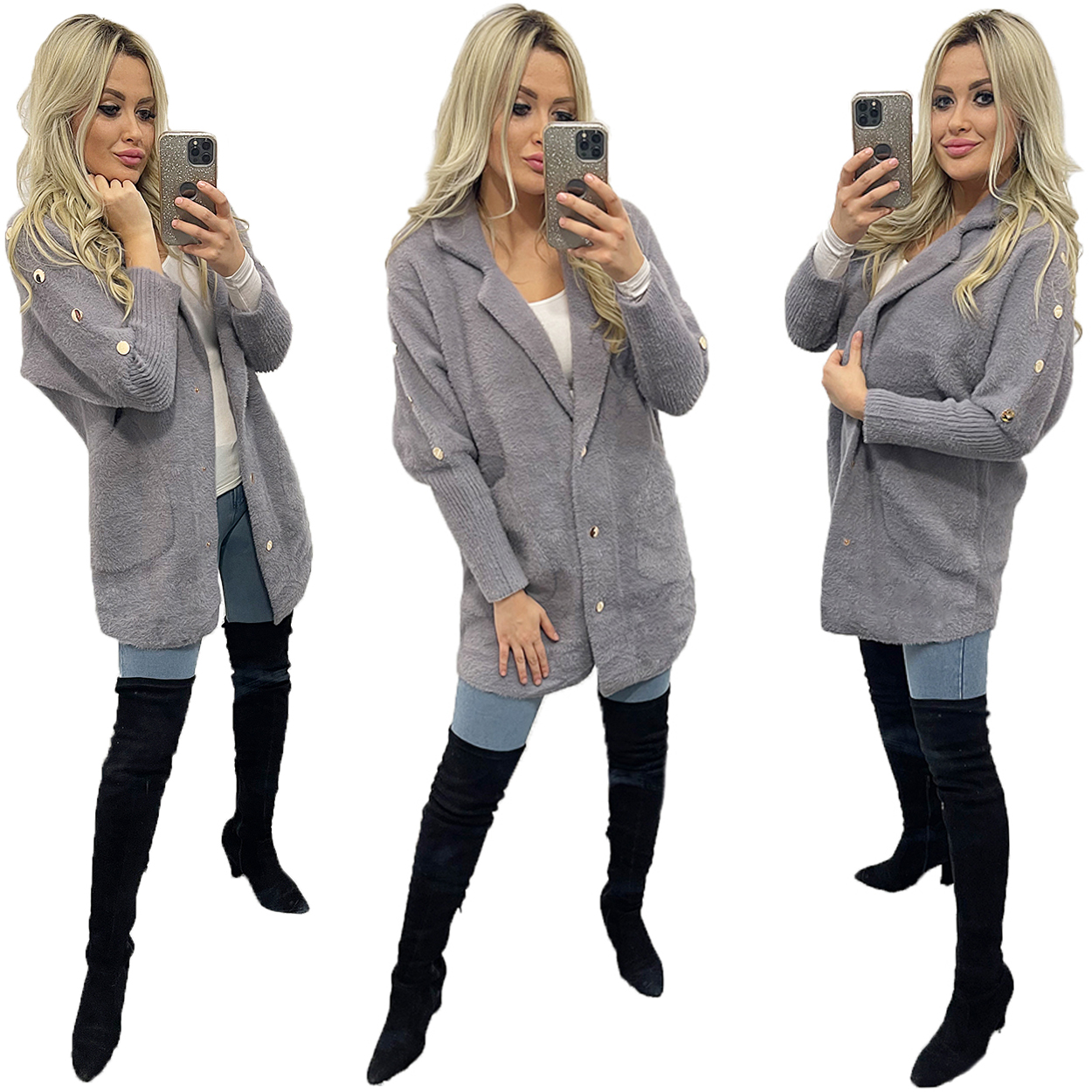 Alpaka z Guziczkami Ciepły płaszcz narzutka Wełna SZARY