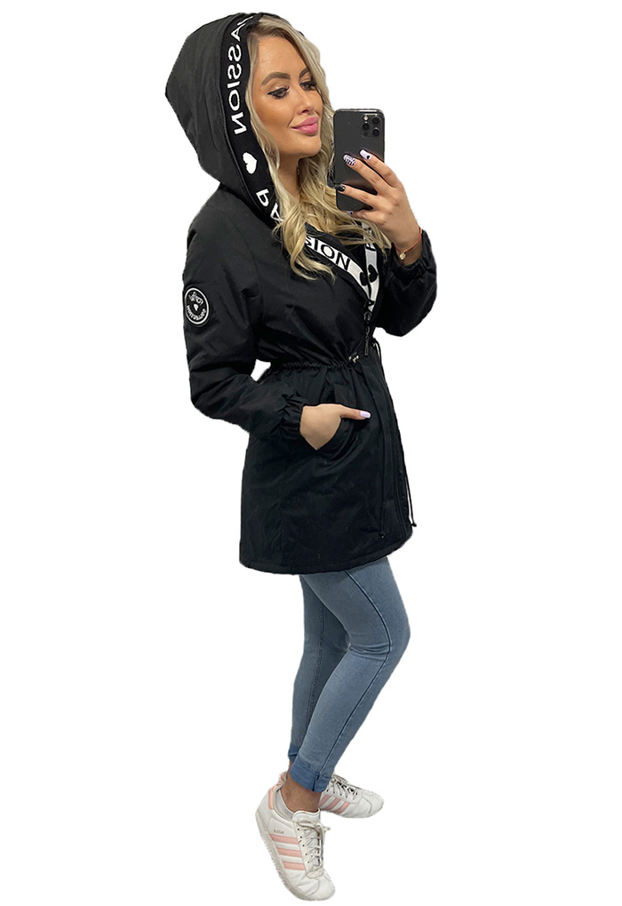 Asymetryczna Parka Kurtka z kapturem CZARNA