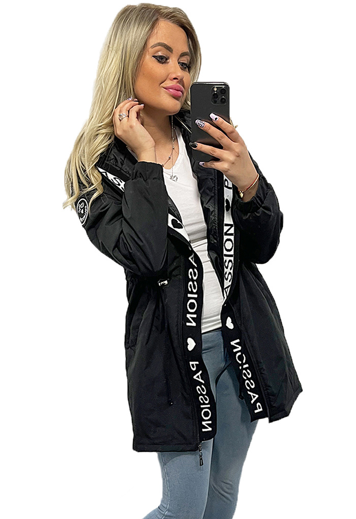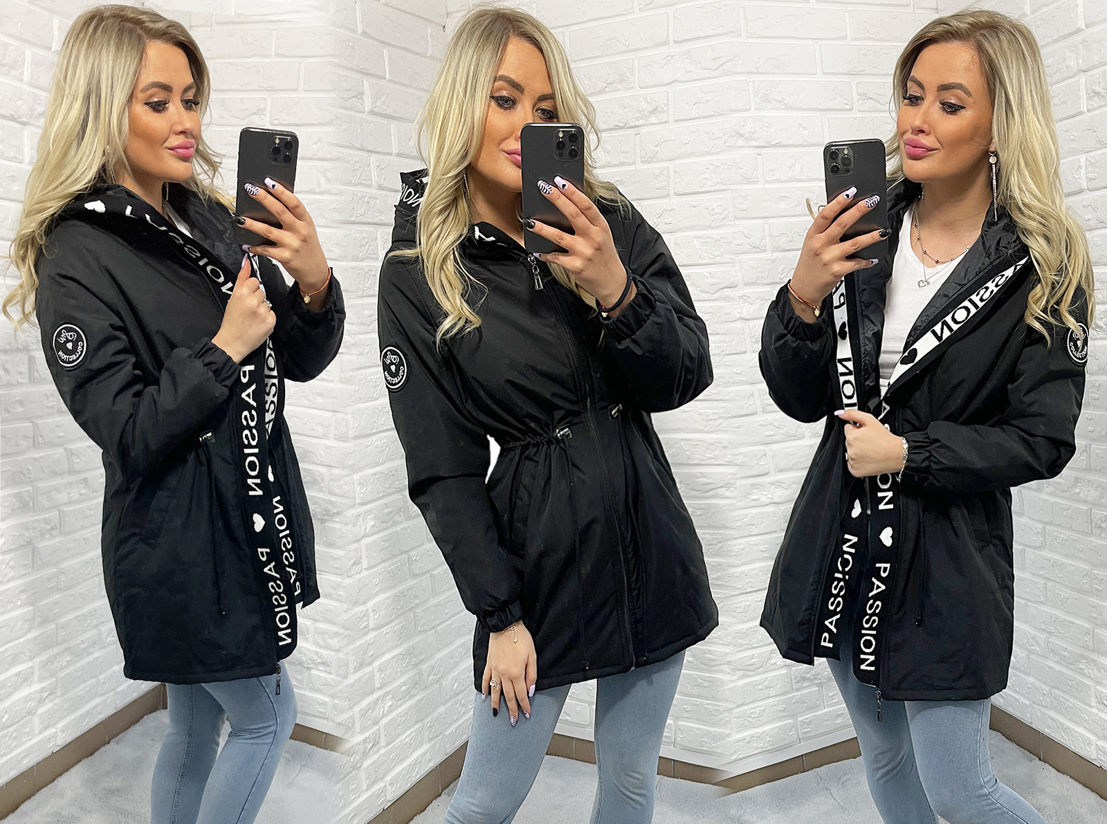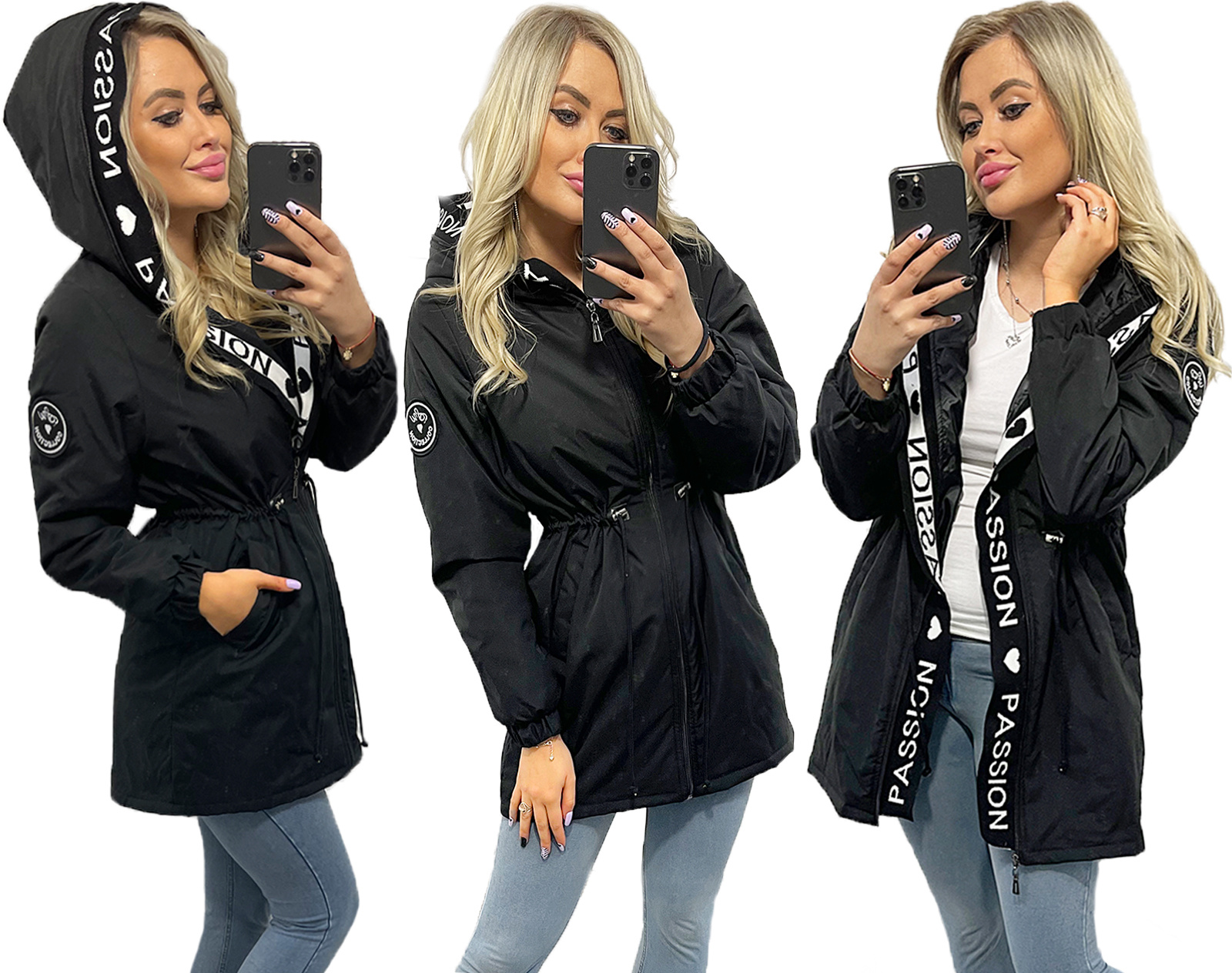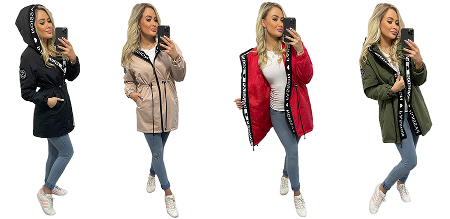 - Najmodniejsze, dzianinowe wykończenie wzdłuż zamka i kaptura.