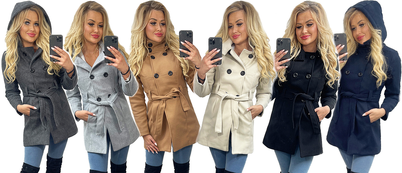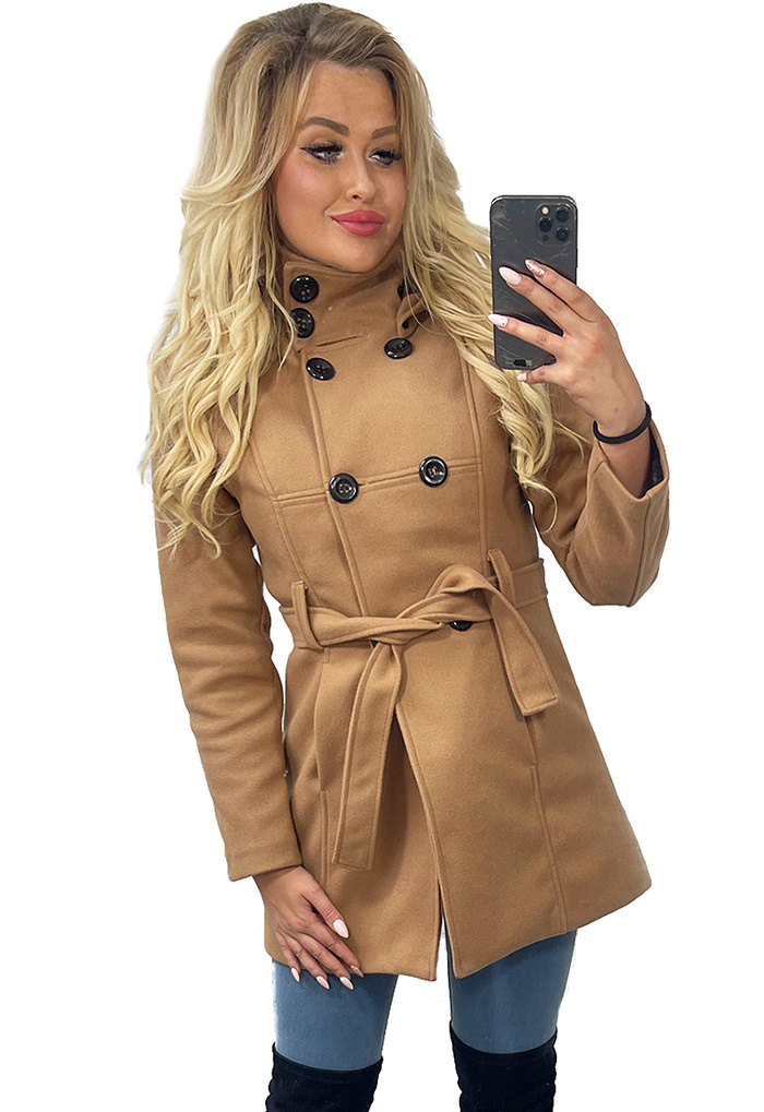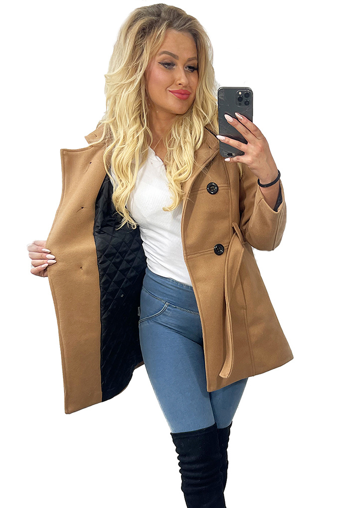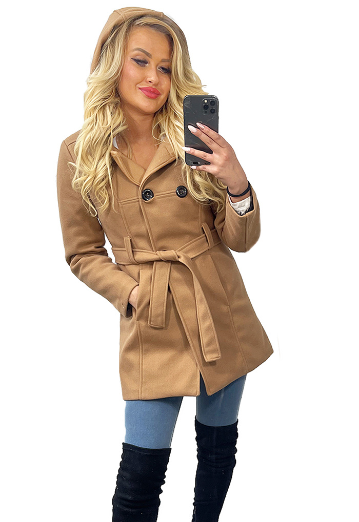 Klasyczny Damski Płaszcz z Paskiem z Kapturem CAMELOWY