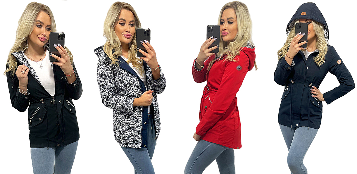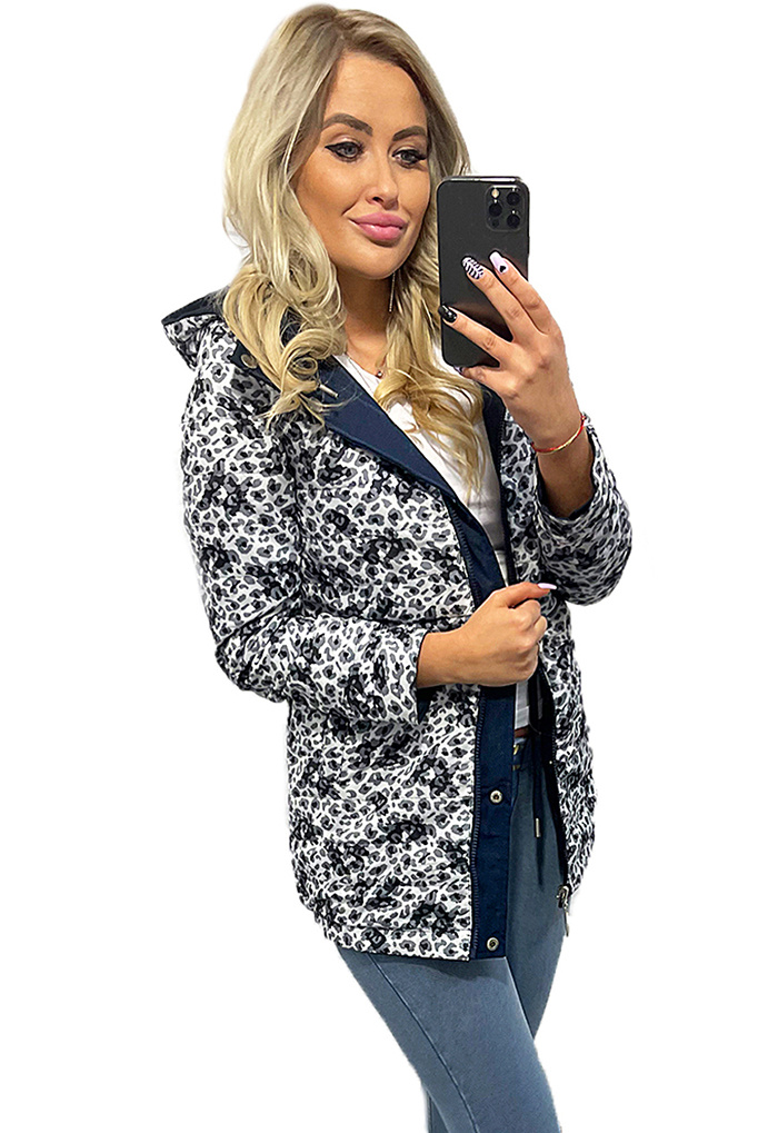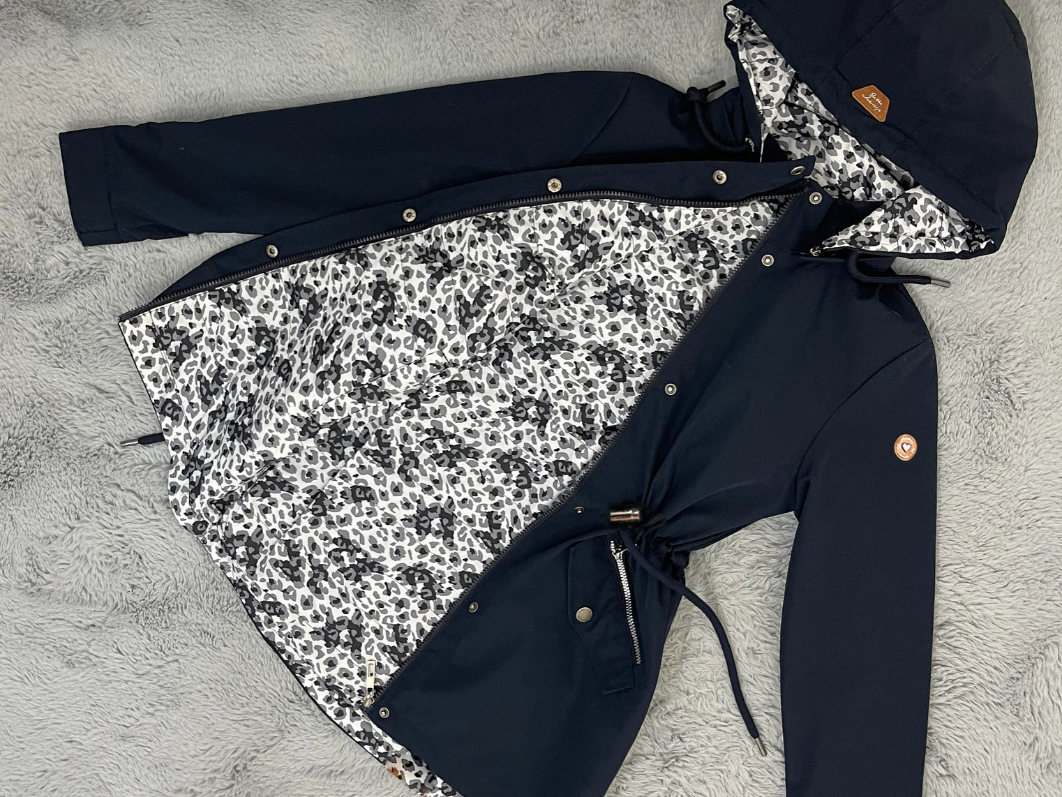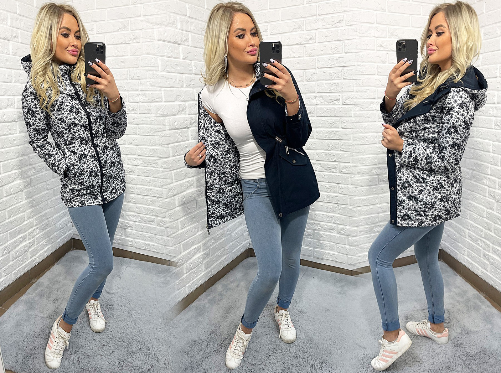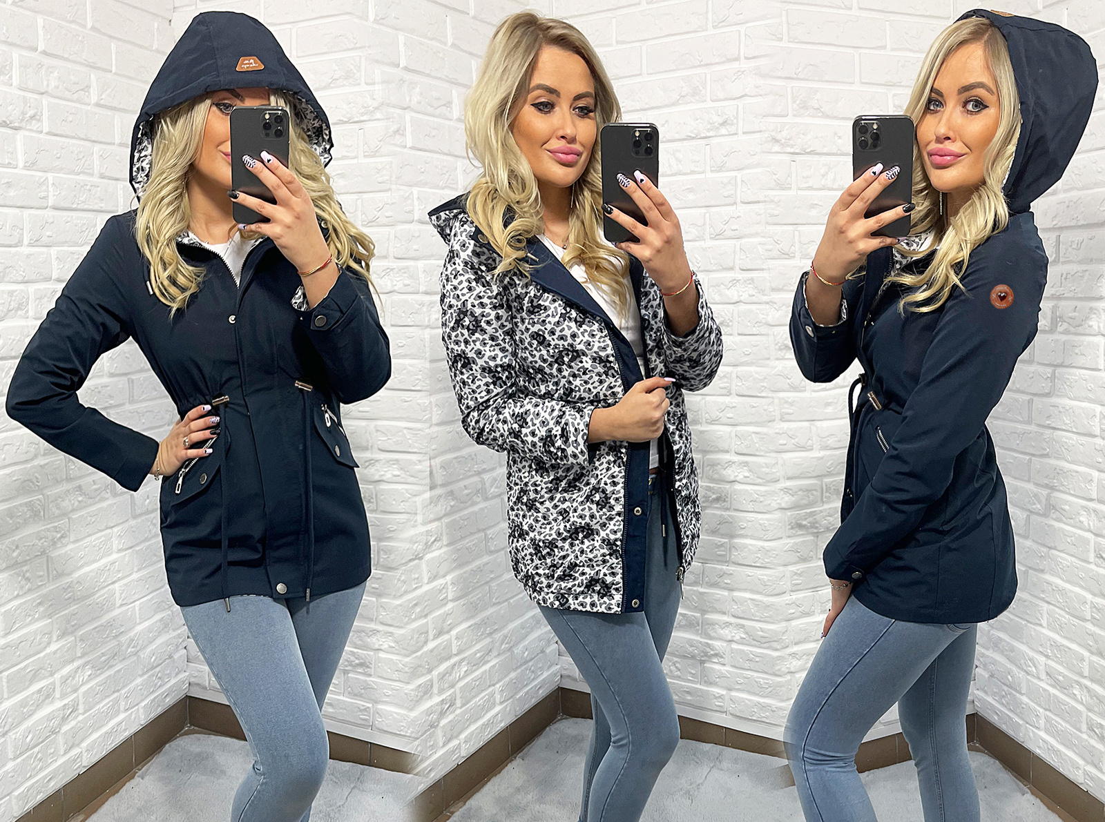 Parka Damska Kurtka Dwustronna z Kapturem GRANATOWA