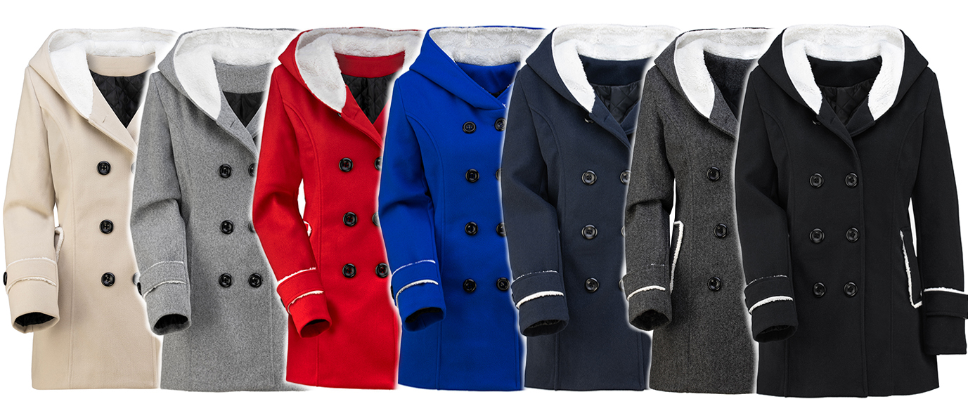 Ciepły płaszcz, wewnątrz obszyty pikowaną podszewką na ocieplinie z watoliny