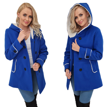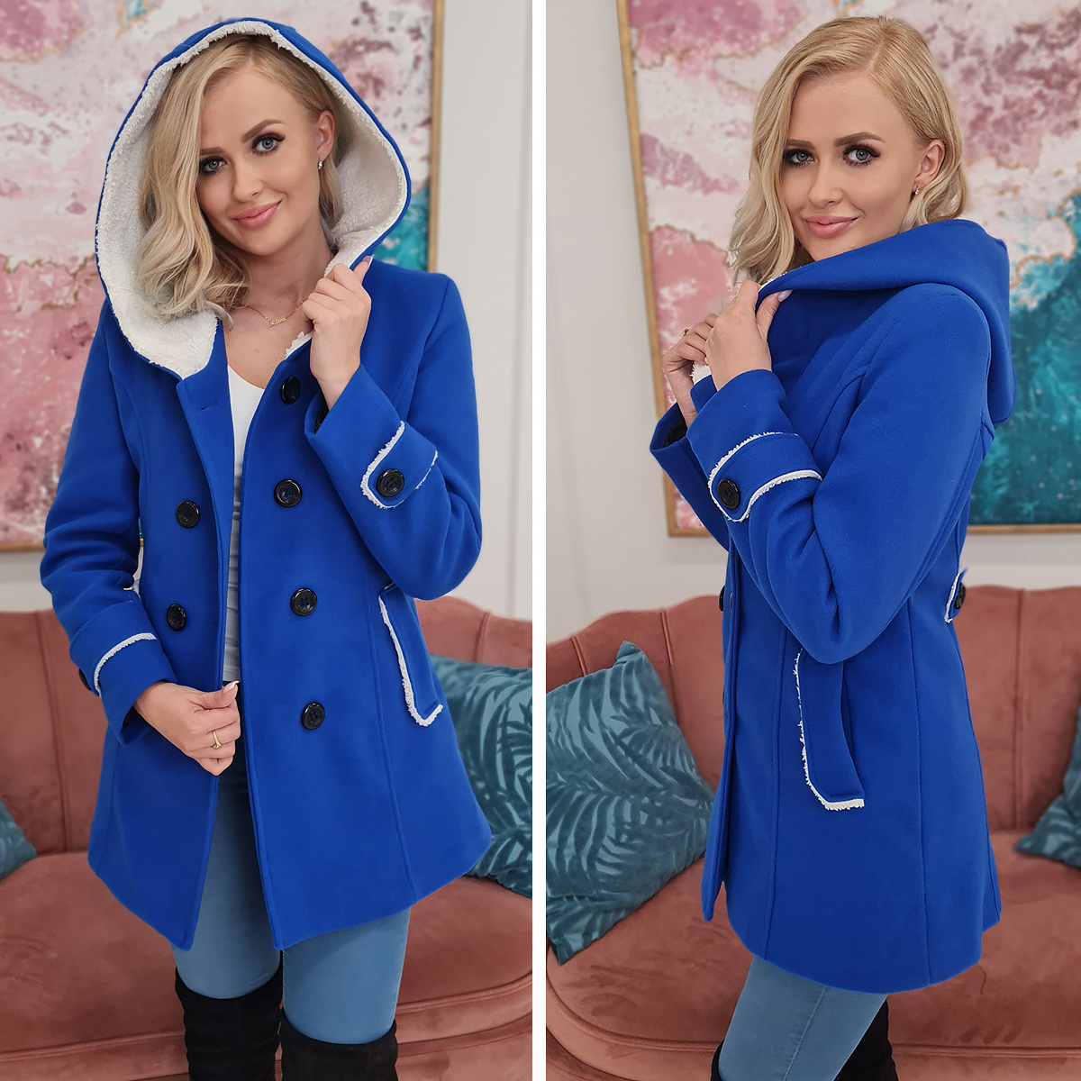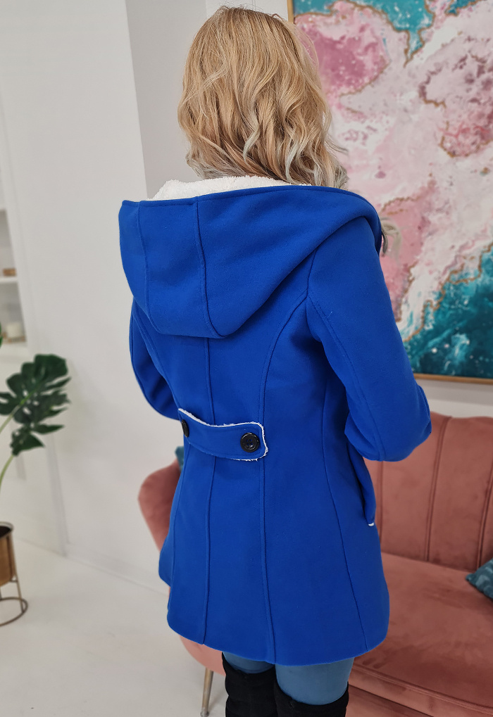 Włoski Płaszcz Z Kapturem Ciepły Z Kożuszkiem CHABROWY